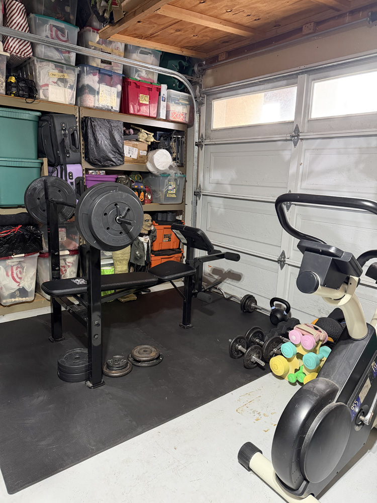 Updated - February 17, 2026: Since this post, the rug I put in the garage got pretty ragged after a few years! We picked up a pack of these great foam squares for below the Workout bench and they work great. We got them at Marshall's and one pack for 29.99 creates a 6x8 area! Click any image for larger view.
