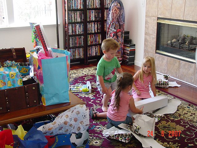 Decorations Decorations Balloons Balloons Gift bags Gift bags Pirate balloon Backyard Jordan and Olivia Opening presents! Jordan and Olivia help Hunter open presents... Still opening presents!