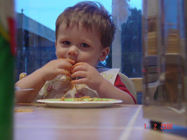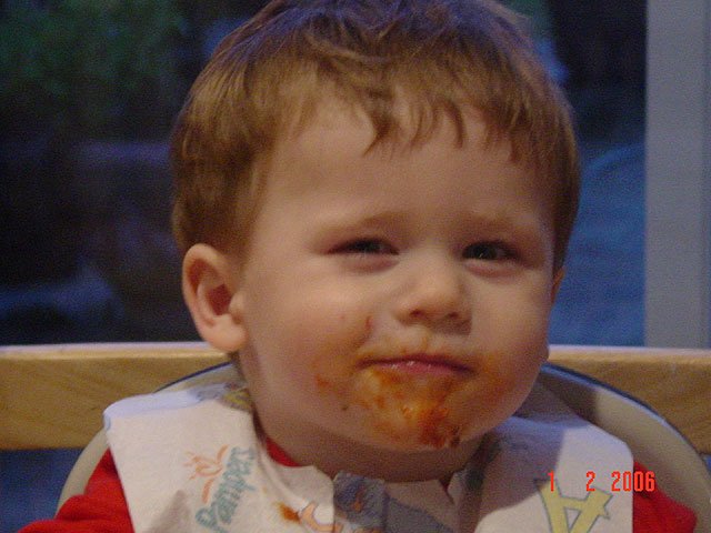 Hunter getting messy with spaghetti...