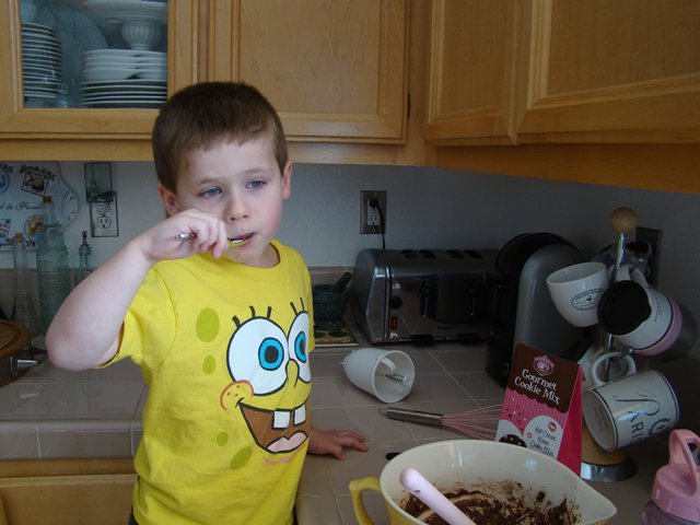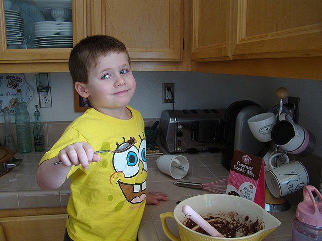 Hunter helps mom make cookies.