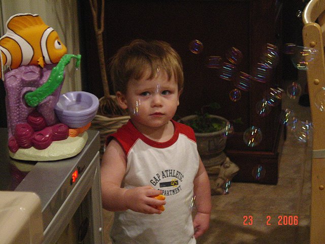 Hunter, Allie & Lily playing with bubbles.