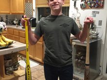 Hunter with his new baseball bats.