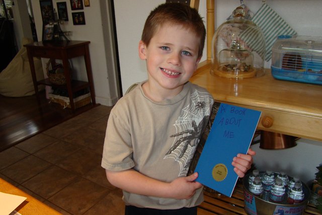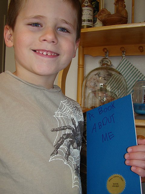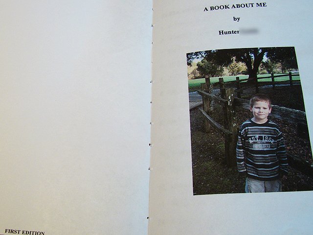 Hunter's class had their book binding day today. Hunter got to "sew" his book himself and bind it. They were also treated to pizza and drinks. He had a fun day and his book looks great!