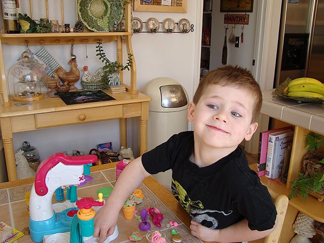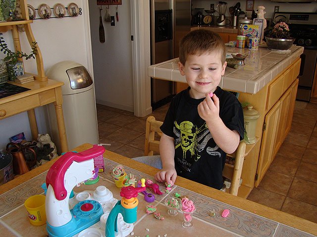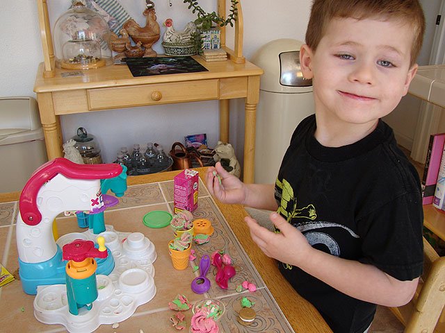 Hunter having fun making Play-Doh ice cream treats.