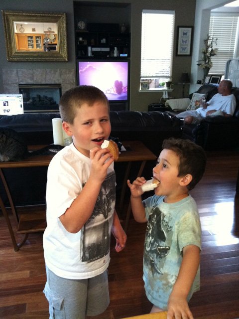 May 4, 2013Summer must be getting close -- Hunter & Ryder are enjoying Choco-tacas and S'mores ice cream sandwiches! Click any image for larger view.
