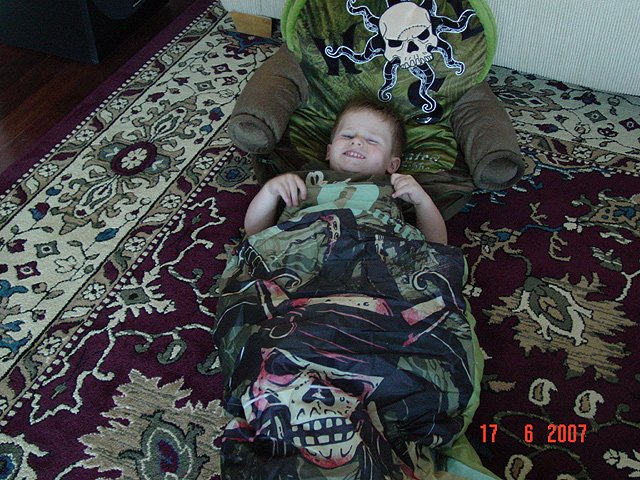 Hunter's new Pirates of Caribbean Chair & Sleeping bag.