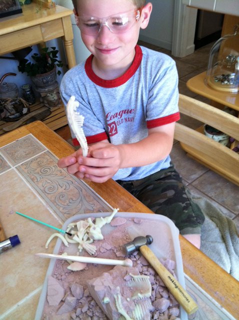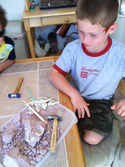 Hunter working on his Dino Dig from grandma.