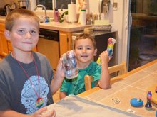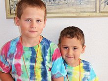 July 21, 2013Hunter got to make a tie-dyed shirt at Austin & Olivia's party today. We washed them tonight and they turned out great! Click any image for larger view.