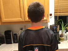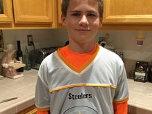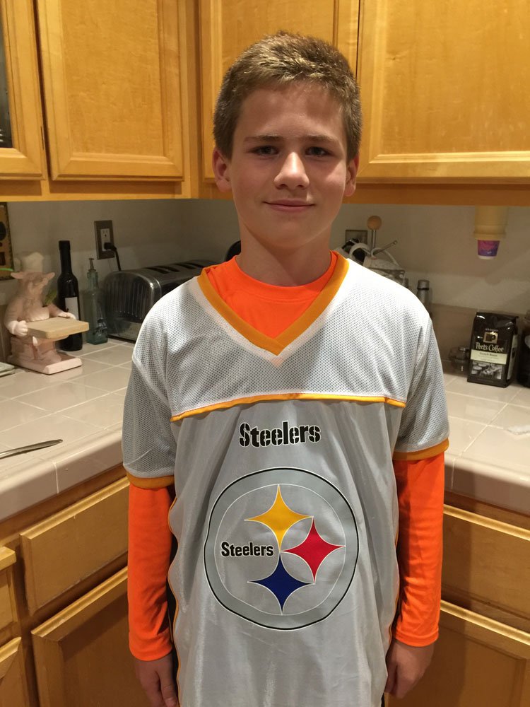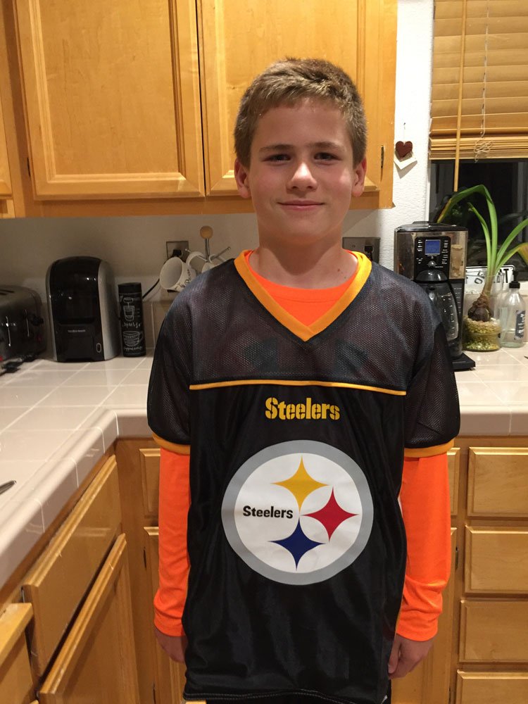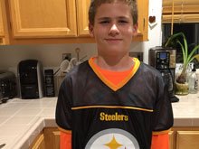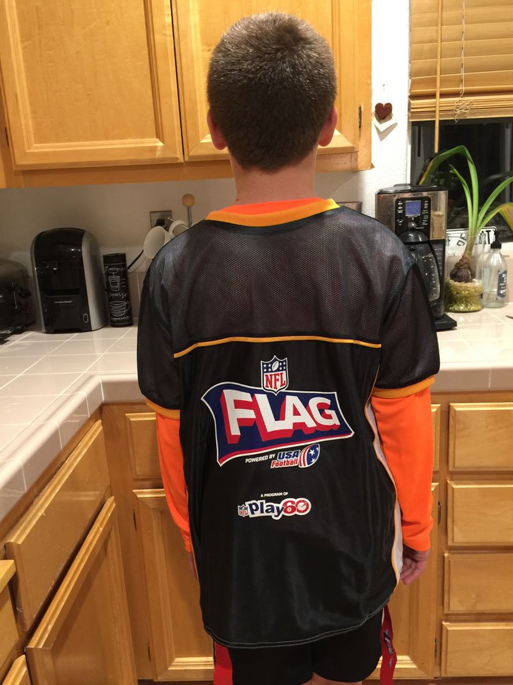 Hunter in his flag football jersey.