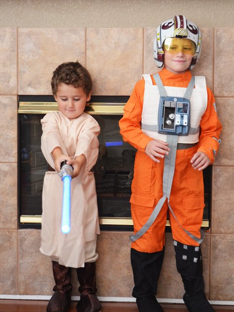 October 16, 2012The boys tried on their Halloween costumes today. Hunter is an X-Wing Fighter Pilot. Click any image for larger view.