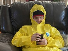 October 31, 2023Hunter tried on Ryder's Napoleon Dynamite costume, but he was Jessie from Breaking Bad for Halloween! Click any image for larger view.