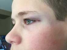 Hunter had a friend over today and they were playing in his room with Ryder. He and Ryder were wrestling while Ryder was holding a multi-use pocket tool he picked up in Hunter's room. He tried to get away from Hunter, and tagged him right by his eye with the tool -- that had a tiny hammer on the end of it! Good thing it missed his eye!