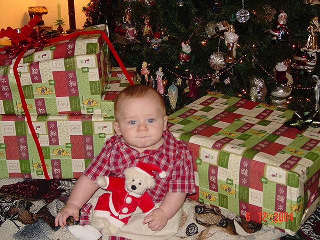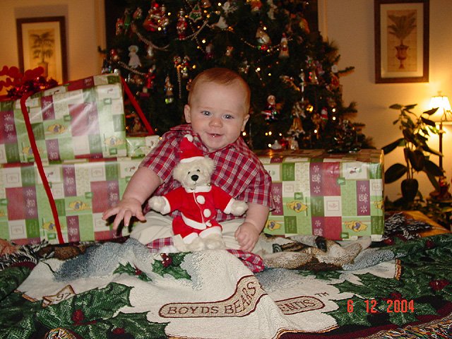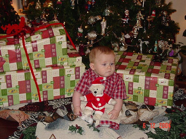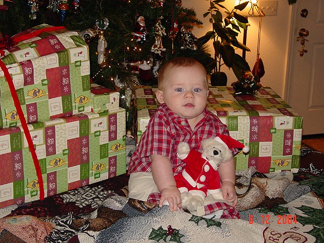 Hunter wearing his new Gap outfit from Robin and Mike. Hunter in the Christmas spirit. Hunter Hunter Hunter