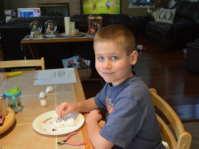 December 13, 2012Hunter making a cotton ball snowman. Click any image for larger view.