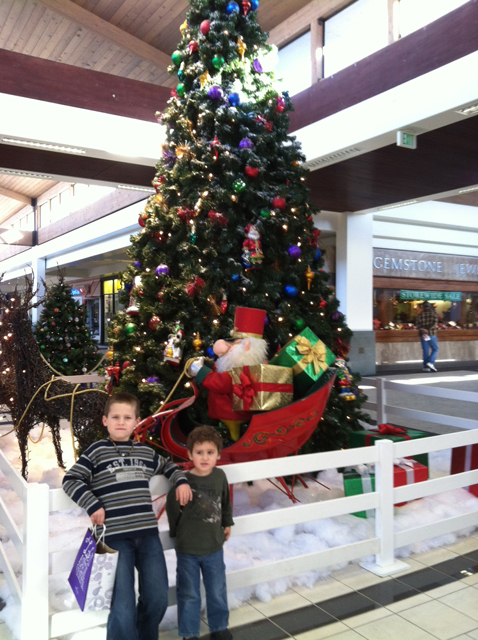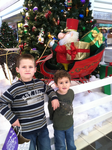 Hunter and Ryder shopping at the mall with mom and getting pics with Santa!
