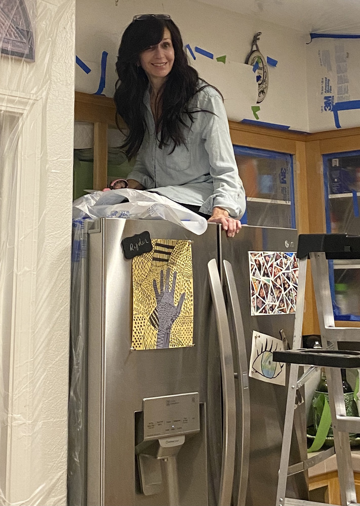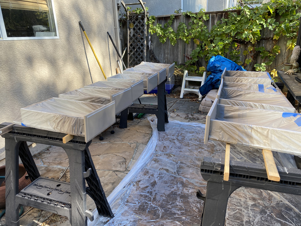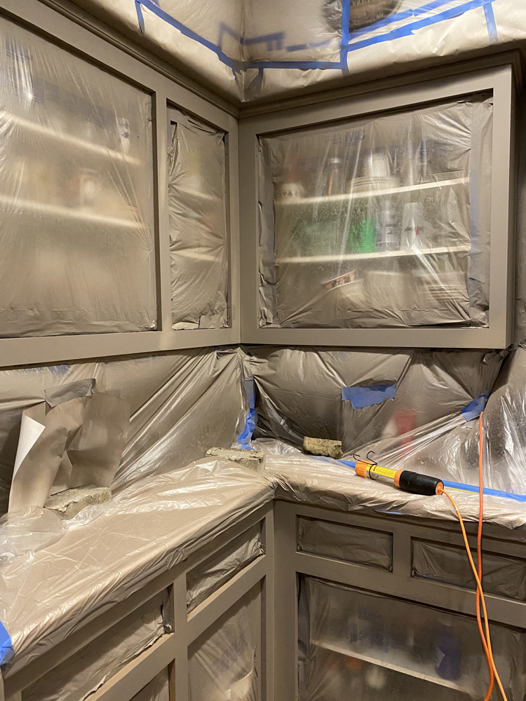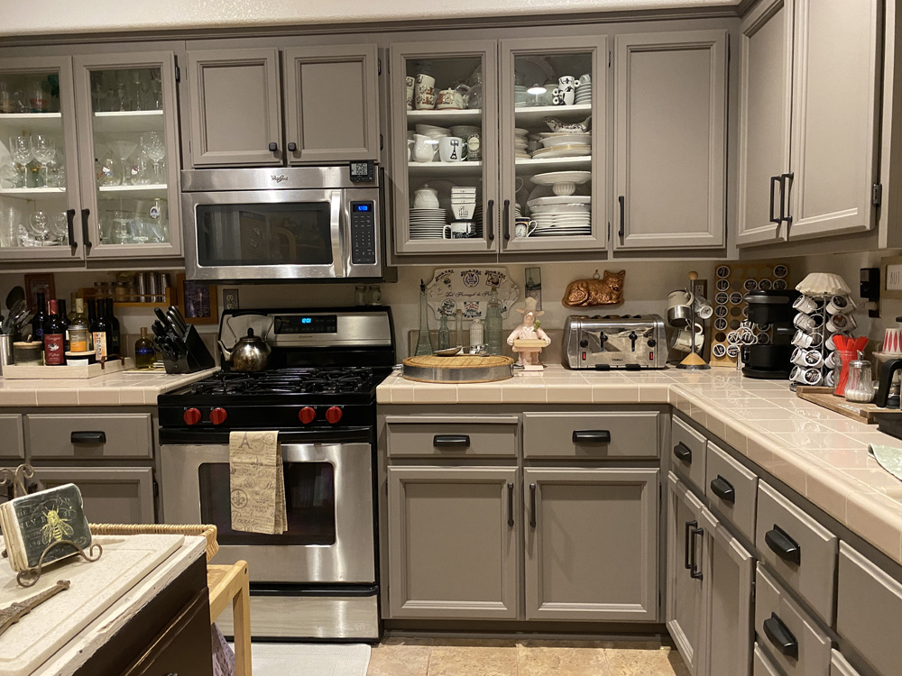 Finally after a very long time we have repainted our cabinets! They were very orange from the sun and incredibly water damaged. We used Behr Scuffguard chalk paint in Wild Truffle, and we absolutely love it!