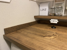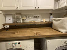 I've seen a lot of DIY videos on TikTok and decided to try making a laundry table. My mom helped and had the idea to make it in two pieces and use latches to clip it together. Now, it will be easily removable if we need to swap out the washer and dryer. We also added a shelf above and side boards. I could not be happier with it!