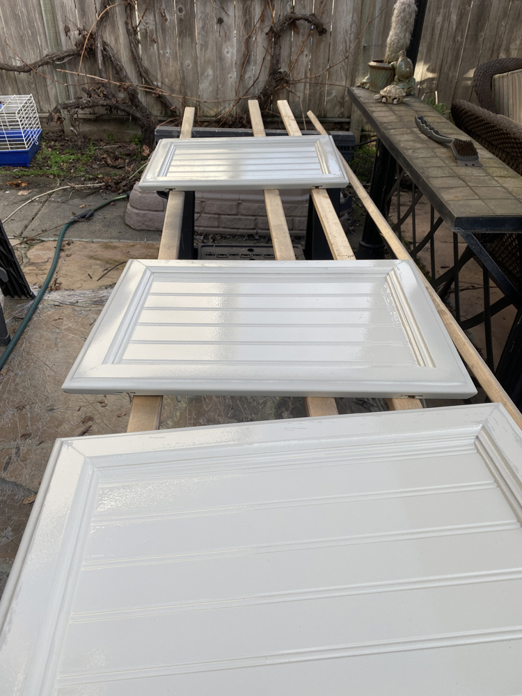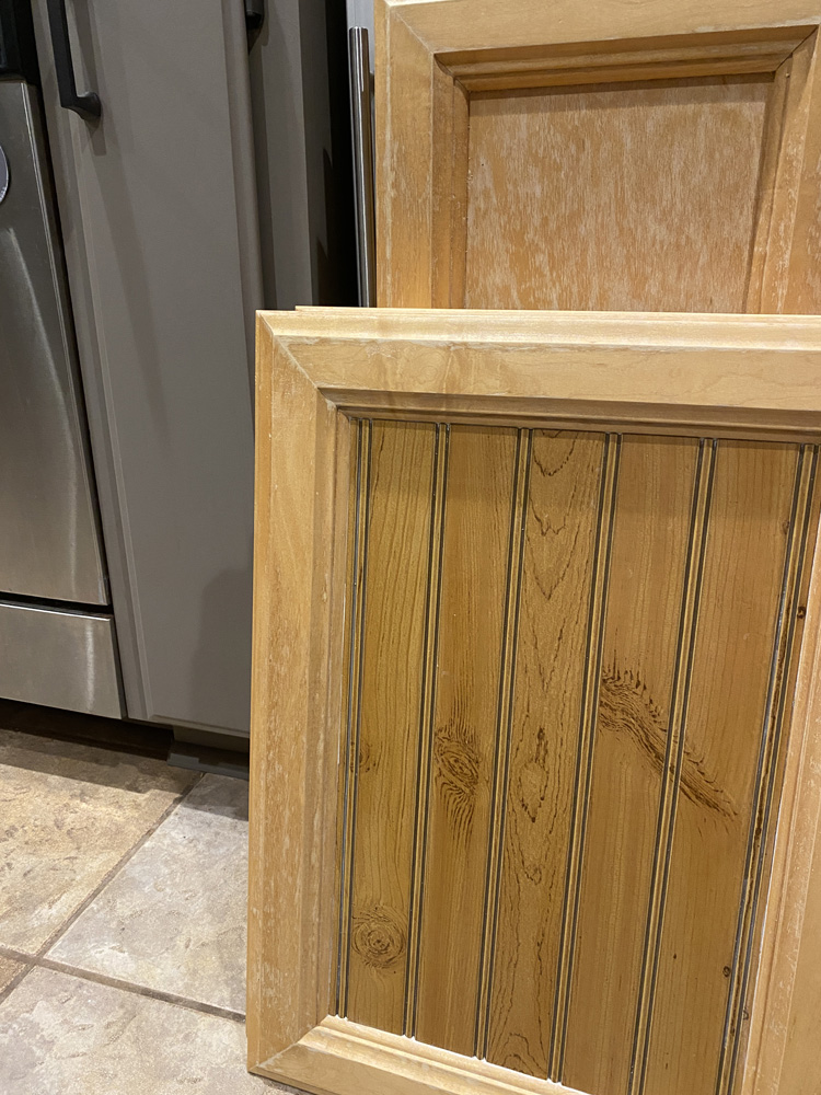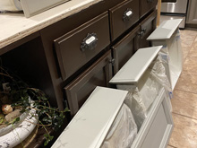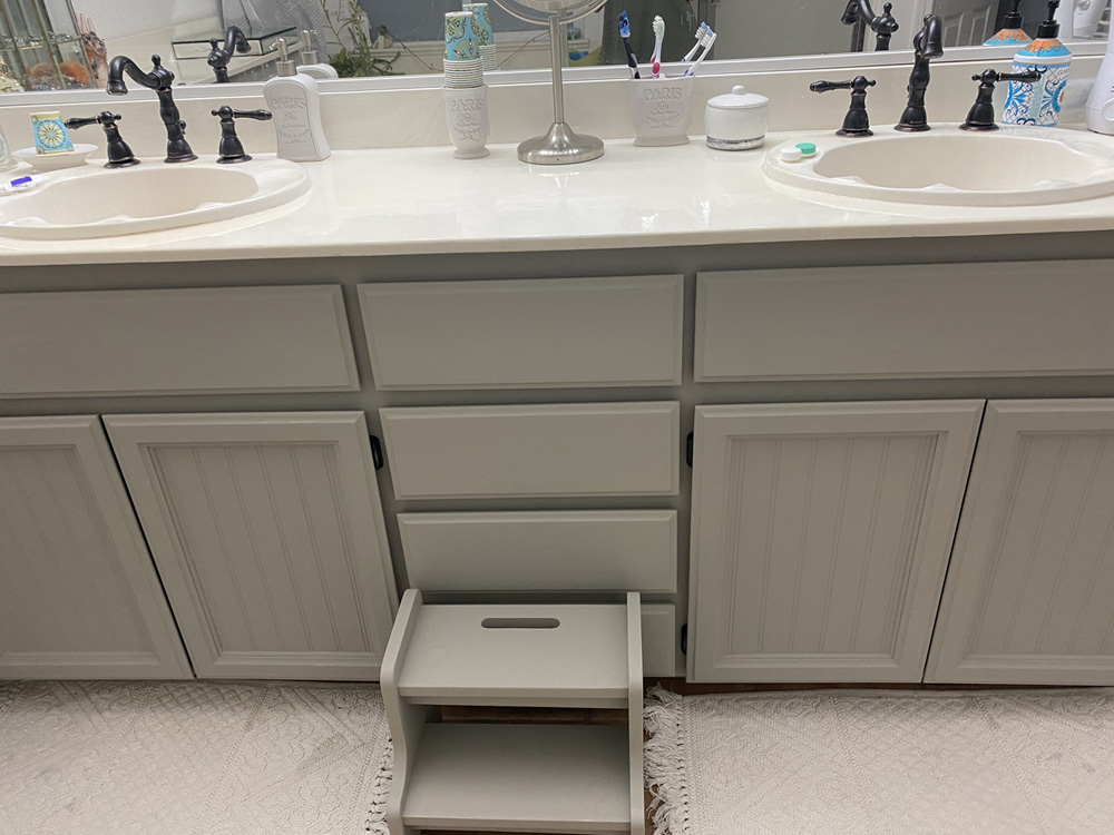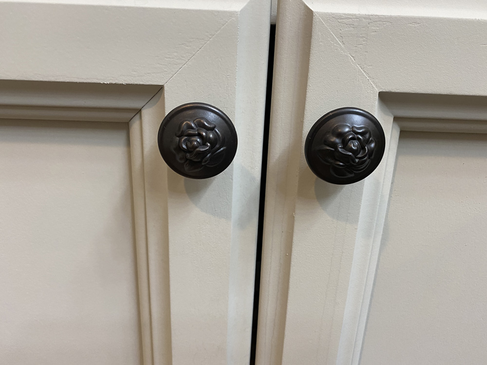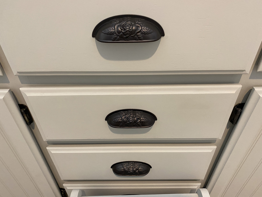 These were the last really water damaged cabinets in the house. My mom made beadboard inserts for the main doors and we used matte chalk paint. It makes a huge difference! This place online has great prices on fixtures so I ordered some Victoria-style hardware to finish it off. Click any image for larger view. |