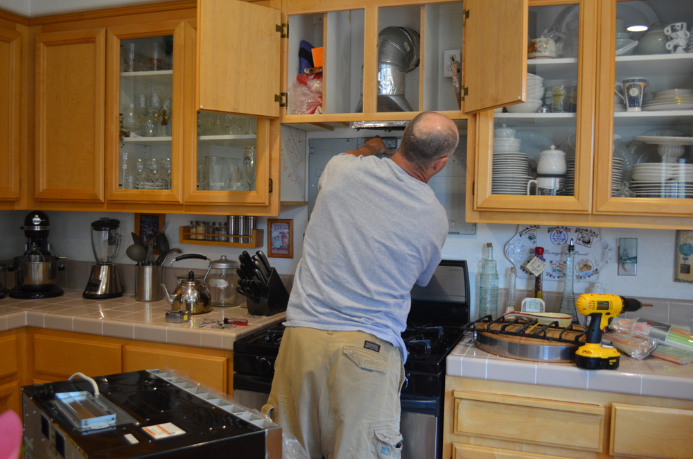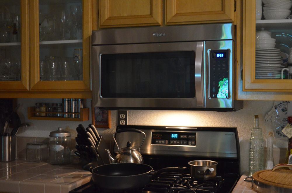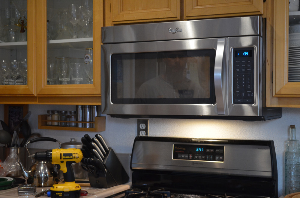 The original microwave in our kitchen finally went out. We ordered a replacement from Home Depot, and Dave installed it today. It was heavy and we had some issues finding studs in the right place, but he got it mounted and it looks and works great!