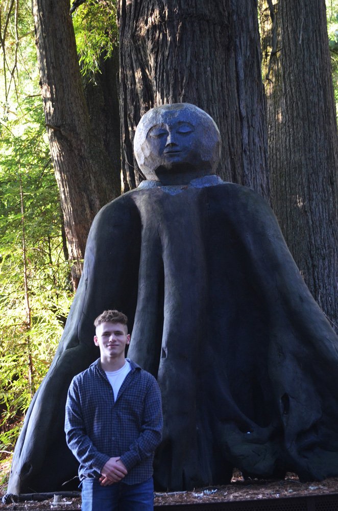 November 28, 2020We needed to take some photos of Hunter to submit for the yearbook, so we stopped at the Grove of Old Trees in Occidental. Click any image for larger view.