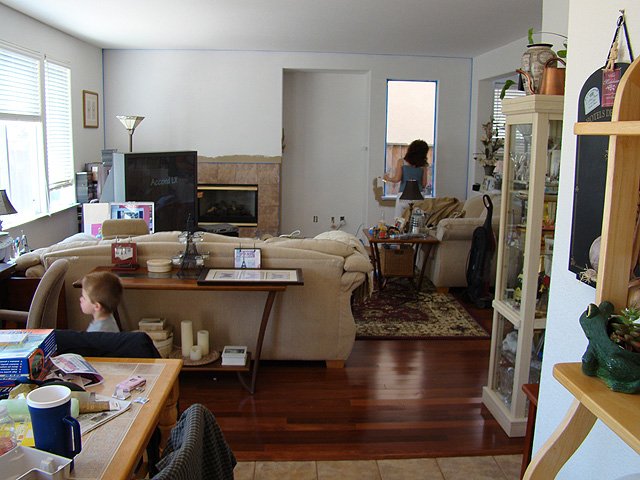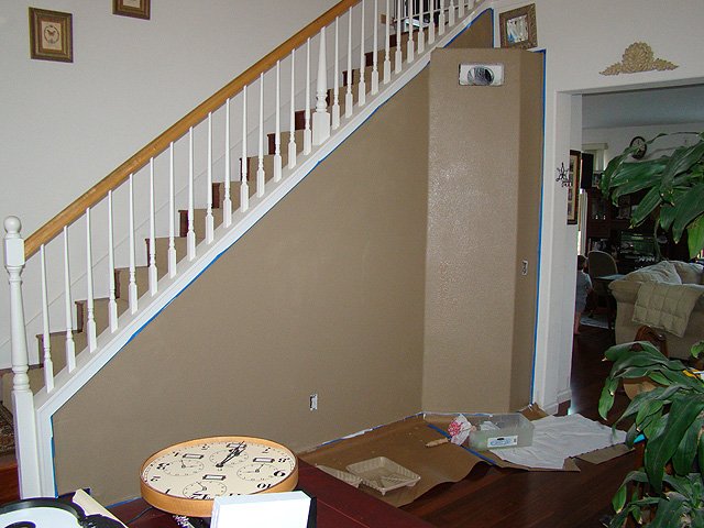 The interior of the house is the original color we bought it with. We felt like a little change, but didn't want to tackle painting everything. We decided to do a couple accent walls. We've painted the main wall in the living room and the wall along the stairs. We have to hang the mirror, and do some finishing touches, but we are almost done...check back for more pics!
