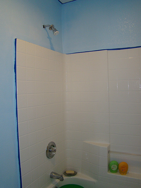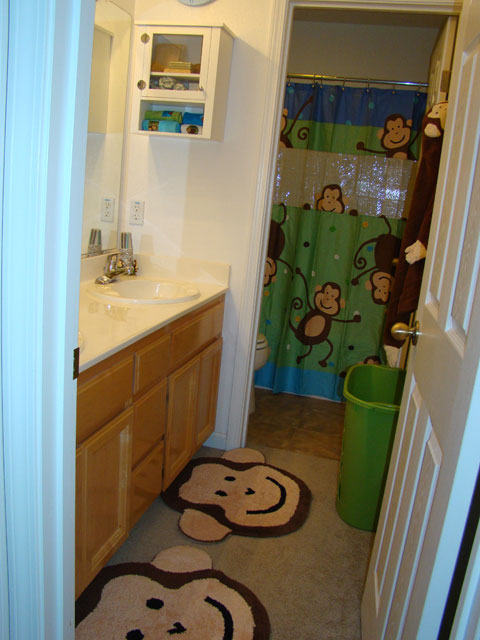 We just got finished changing the guest bathroom to the kid's bathroom. Today, Dave painted and it turned out great! Click any image for larger view.