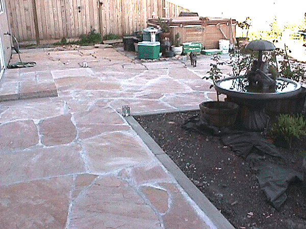 Finally a finished step! Lots of flagstone. Should be finished soon! Our new patio...worth the wait!