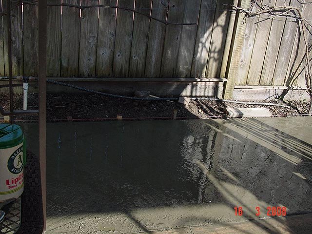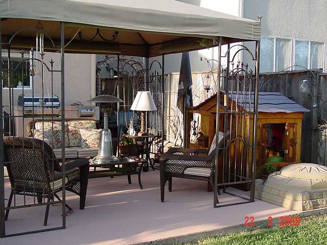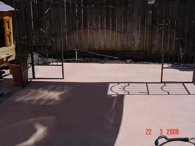 It's getting there! Final smoothing. Drying! Dave painting the new cement. Looks nice! Another view. Furniture moved back. View of gazebo with clubhouse moved.