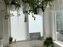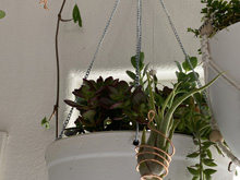 I saw a picture of a cute plant hanger that looked like an old ladder and wanted to make something like it. It was my mom's idea to refinish the pot rat we took down and use that insstead. I absolutely love it and my plants couldn't be happier!