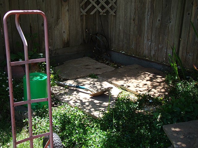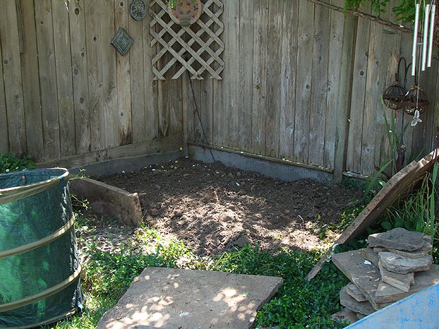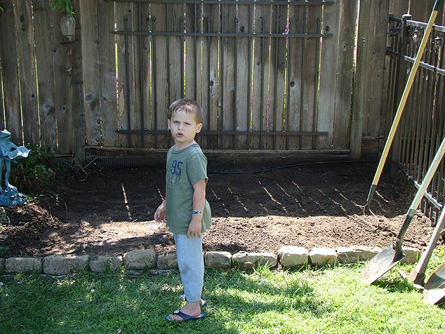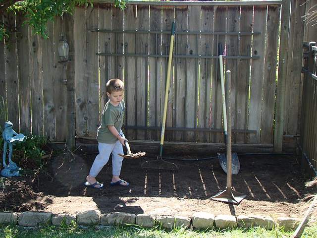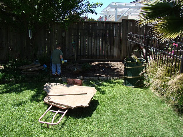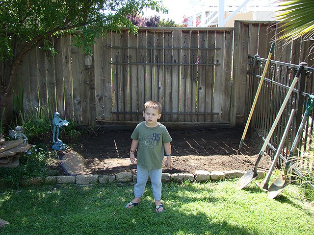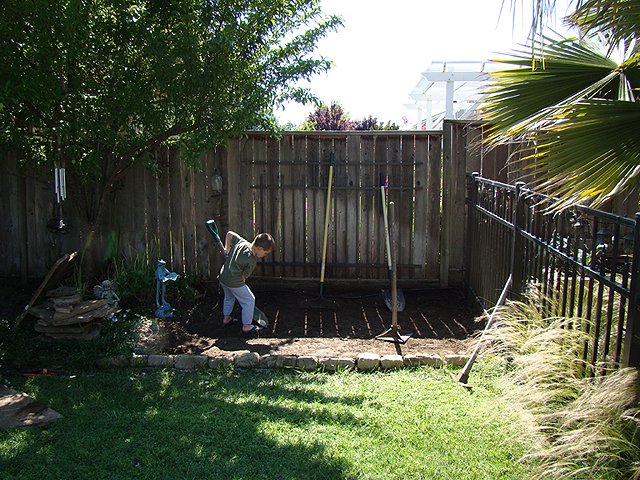 June 6, 2009We are making a framed in play area in the backyard that will be filled with playground material so it is safe to play in. Hunter's new climbing rock will go here. Click any image for larger view.