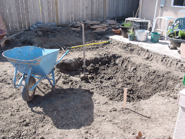 Gary and Dave working hard! Getting much closer now! New palms and Bird of Paradise Heidi Planting around the waterfall. Bullfrog tadpooles... New orange koi.