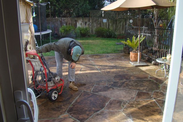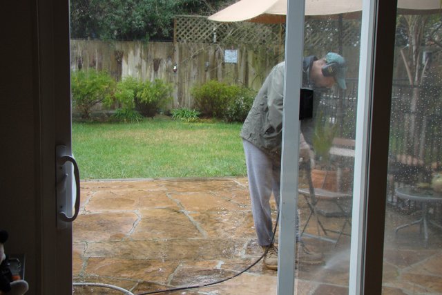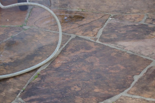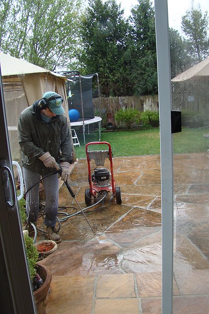 The flagstone patio was getting very black with mold and dirt from winter. Dave pressure washed and it looked better, but was still a little black. He also applied the 30-Second Cleaner we got at Friedman Brothers. It seems to have removed a little bit more of the mold. We still have some dark, moldy spots and may try another cleaner -- but it looks much better.