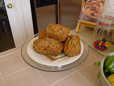 Note: You can make one large loaf instead of smaller ones, but you will have to bake it at least an hour. Check bread after an hour and if it is not done in the center, cover edges with foil and check again in 10 minutes. This bread tastes great drizzled with honey!