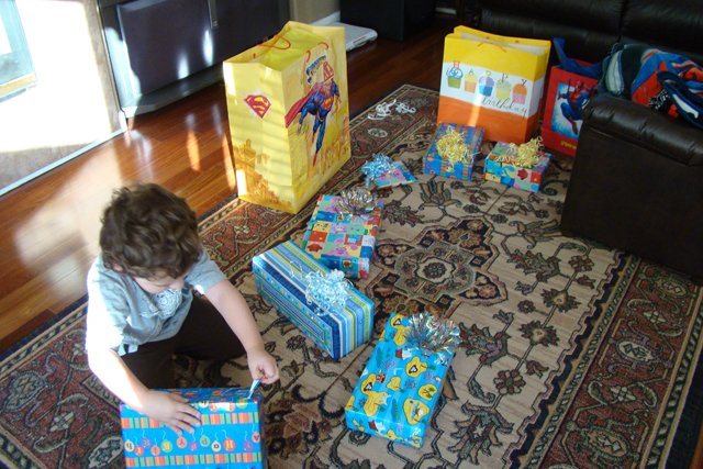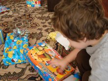 January 28, 2012Ryder's birthday party is next weekend, but we celebrated on his birthday today with a mini cake and presents. Click any image for larger view.