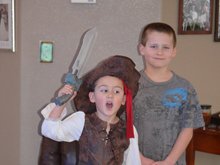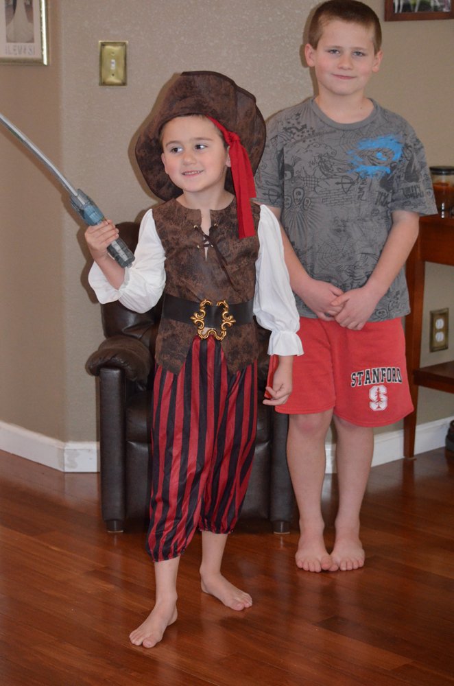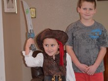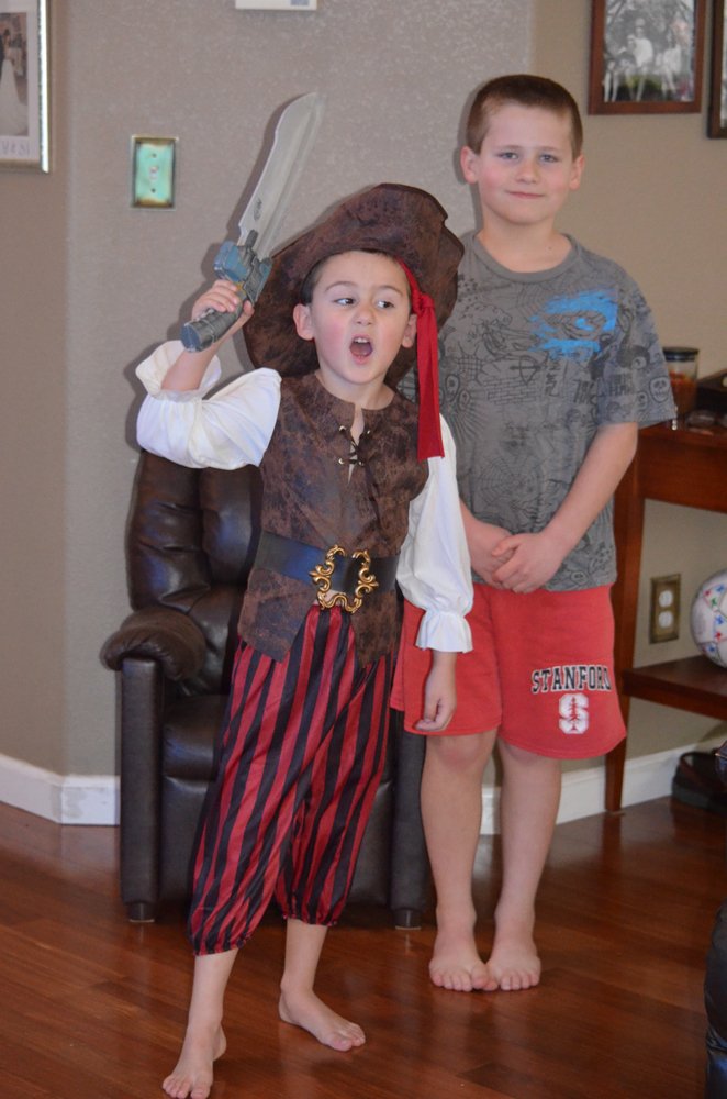 March 3, 2014Ryder wanted to dress like a pirate so I pulled out Hunter's old costume. It was from when Hunter was around 3, so it barely went on Ryder! Click any image for larger view.