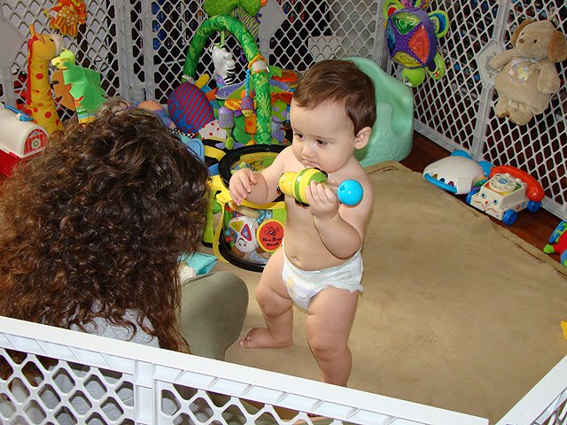 October 17, 2009Ryder stands on his own all the time now. He can takes steps and walk if he is held by the hand. He will be walking in no time! Click any image for larger view.