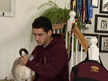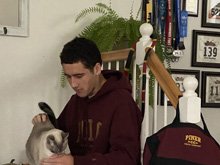 Ryder PicsOctober 24, 2025Katana gets on Ryder's lap like clockwork every morning when he is putting on his shoes and trying to leave for school...lol.