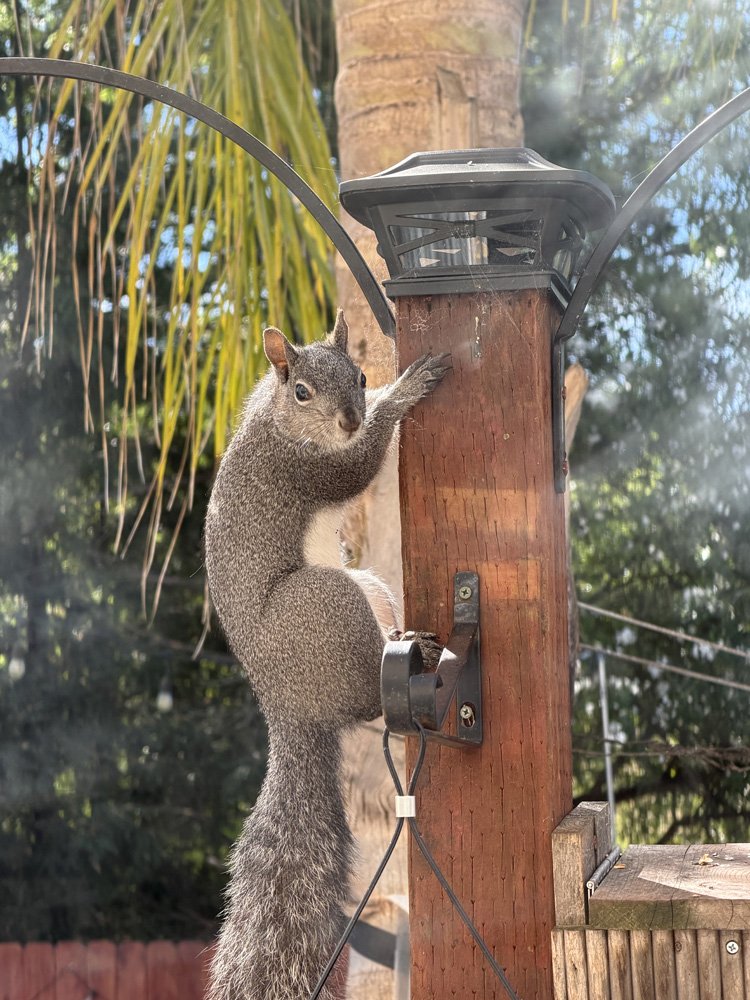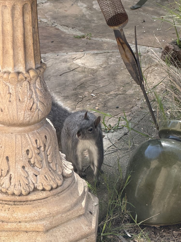 The lemon tree is full of lemons, but unfortunately, our plum tree may be infected with a fungus from Dave's over-zealous pruning! We are hoping we can save it. Our brown tree squirrels are still abundant, but we've had a gray ground squirrel visiting a few times as well!