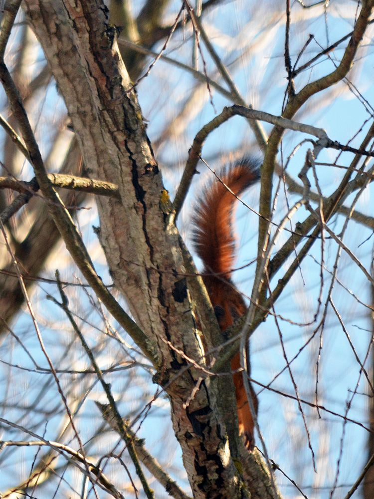 The squirrel family in our backyard palm tree is still very active in the cold weather. Soon, they will be cleaning out the old nest by throwing everything out and making a mess! Then, they'll be busy gathering new nesting material for spring. Hoping to see new babies in a few months!