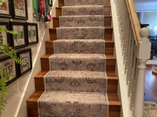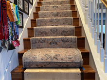 March 10, 2022When we had our wood floor done, the installer told us he could use the leftover wood to do the sides of the stairs, and then we could carpet the center. When he explained this, we didn't know he would cut off the overhang on each step so the steps were much narrower and probably not to code! Also, even though we had padding installed under the carpet, it was not thick enough on the edges to hide the gap. It always looked awful. Over time, the burber carpet also get very dirty with the cats and food traffic. This year, we finally decided to fix it. We cut boards to make treads where there was no wood in the center of each step. We routed the edges so it would match up with the wood bull nosing. The bulk rolls of stair runner didn't have a lot of options and was pricey. My mom found a bunch of flat weave runners by Loloi on sale at Marshalls. We cut the ends off and matched them up in seam of the stairs so looked like one piece since we carefully matched the pattern. I think we ended up using 4 stair runners at $24 each! We had extra scraps so my mom used edging to make a piece for the landing and top of the stairs. We also used the edging on the runner so it looked more like a continuous stair runner. Click any image for larger view. |