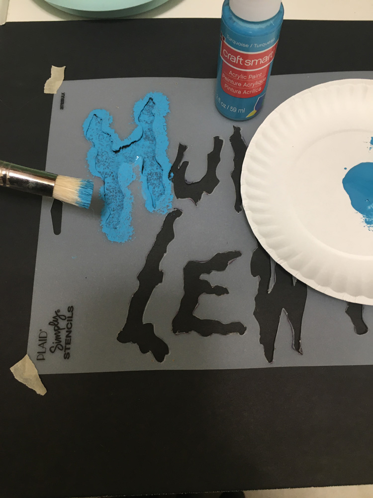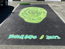 Hunter recently painted the Rick & Morty portal for his senior parking spot. He wantedx to add his name, but we wanted to do the Rick & Morty style font. We bought blank stencils and made enlargements of the letters on the printed. We then traced them on the stencils and used a hot craft tool to cut them out. We painted the letters in stages so they had the same effect. We also added Pickle Rick! It came out reallu cute.
