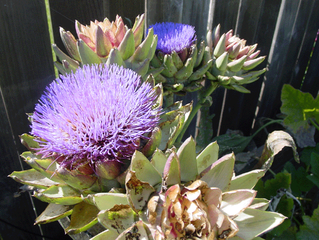 Friendly neighborhood quail. Red roses Artichoke bloom. Artichoke bloom. Heidi relaxing by the pond. Orange flowers. Scary spider in our vegetable gardens.