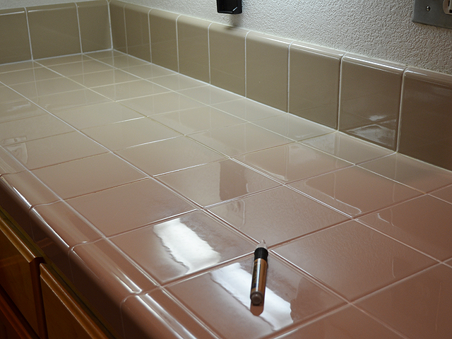 Coating the Grout on the Kitchen Counters
