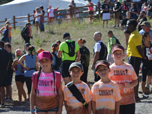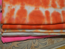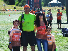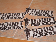 My friend did step one: tie-dying the top portion of the shirts. After the shirts were washed and dried, I used brown Tulip tie-dye on the bottom part of the shirts to give the impression of mud (Since this is a mud race). After that was washed and dried, I did the transfers. I always use iron-on transfer paper that works great. You print the design on a deskjet, then iron it on.