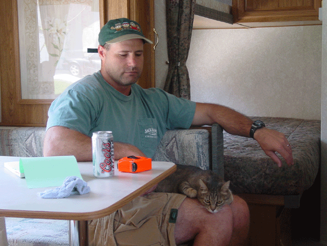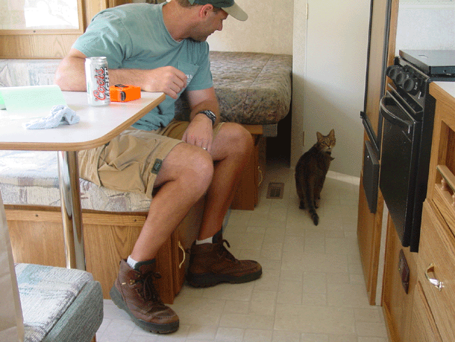 Allie exploring the new trailer. Allie looks a little worried... Allie resting. Nature from our trailer window...