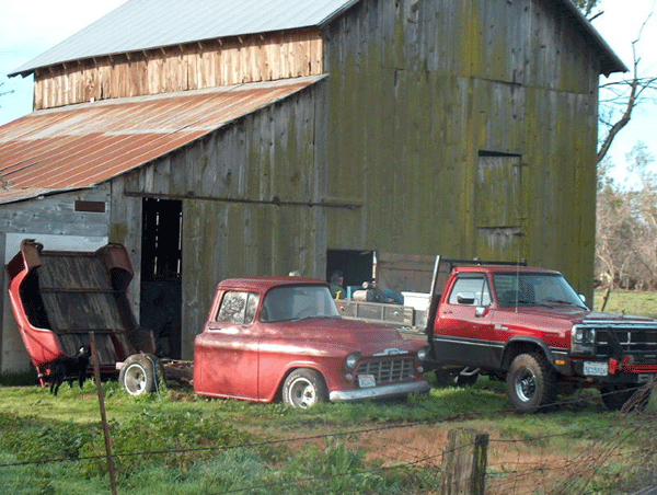 This was Dave's first car. He bought it when he was 16 and drove it through high school in Willows, California. Dave moved to Santa Rosa and brought his truck with him. When he lived in Santa Rosa, his truck was stolen. The truck was found, but had been stripped of the tires and some other parts. Dave decided to take his truck back to Willows to store at his parents' house because he was moving around a lot while going to SRJC. During the truck's stay in Willows, it spent time stored in his parents' garage, then at the Blue Gum Hotel where his sister worked, then back to a wherehouse for his parents' pool supply business, and finally to a ranch in Orland where his grandpa lives.