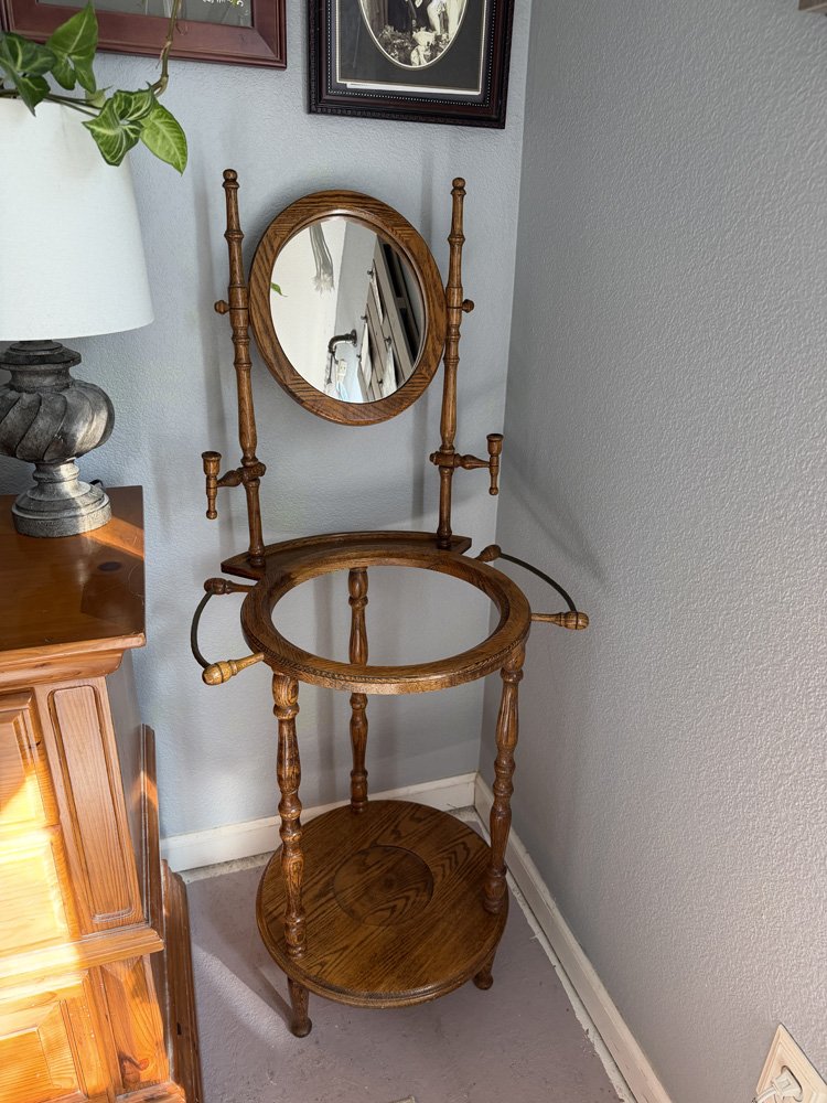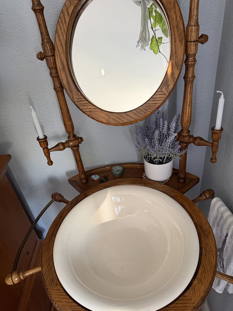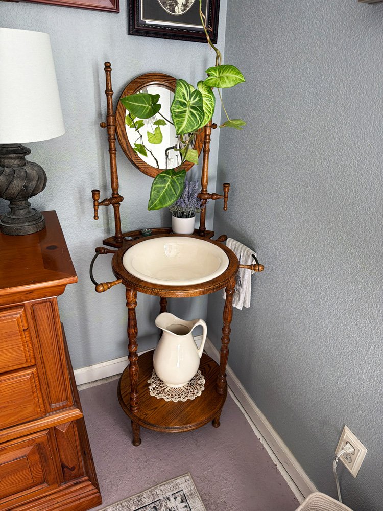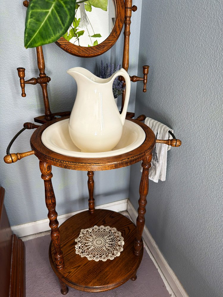 March 2026I found this adorable wash basin stand at Restore! It was an amazing price, but I wasn't sure where to put it so left it there. I was dreaming of it all night, so I called Restore first thng the next morning and it was still there. I am so happy I went to get it. I founs a handmade vintage wash basin bowl and pitcher at Poshmark and it fits perfecttly!