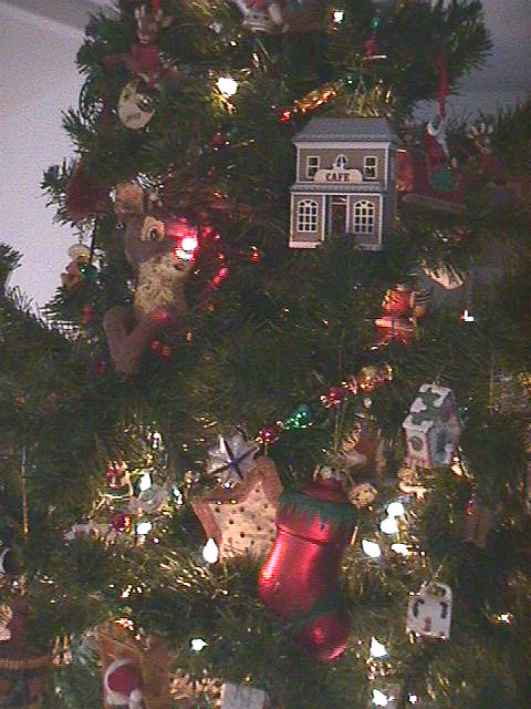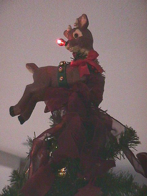 Closeup of tree in loft.. Another closeup. Our medium-size tree. Rudolph tree topper. Flying monkey